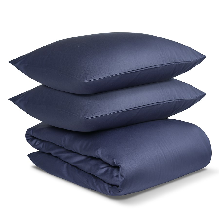 Комплект постельного белья полутораспальный из сатина темно-синего цвета из коллекции essential