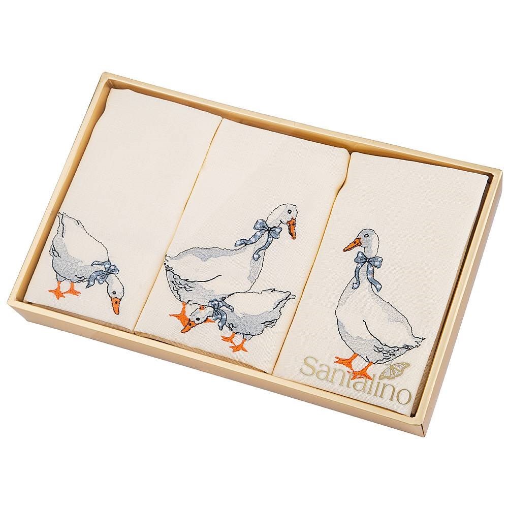 Комплект салфеток из 3шт 40х40 см "Гуси",шампань, 100% хлопок.