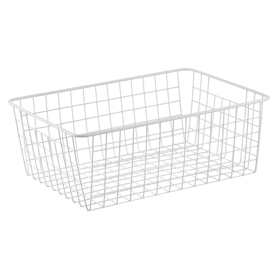 Корзина для хранения Mina выполнена из прочной железной проволоки, что делает ее практичной, удобной в использовании и долговечной. Порошковое покрытие белого цвета обеспечивает изделию защиту от коррозии и других внешних воздействий, а также привлекательный внешний вид. Емкость позволяет компактно разместить кухонные принадлежности, посуду и другие бытовые предметы.