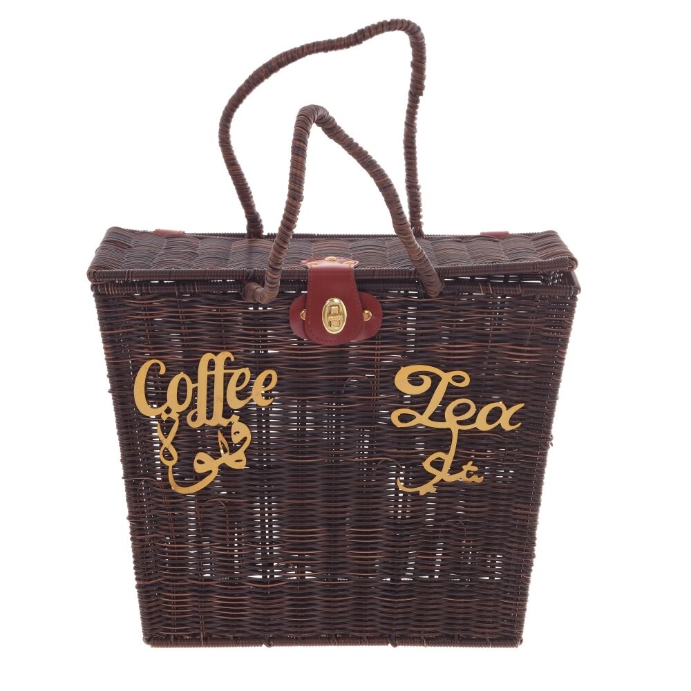 Оригинальная плетеная корзина, украшенная надписями "Coffee" и "Tea",оснащена ручками для удобного перемещения.Закрывается на замок. Отлично впишется практически в любой интерьер благодаря натуральным материалам и цветовой гамме.