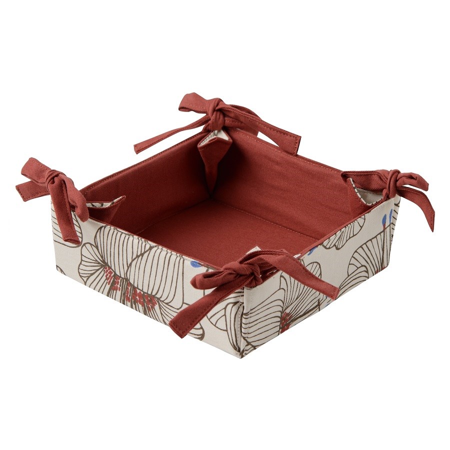 Корзинка для хлеба из хлопка терракотового цвета с принтом Цветы из коллекции prairie, 30х30 см