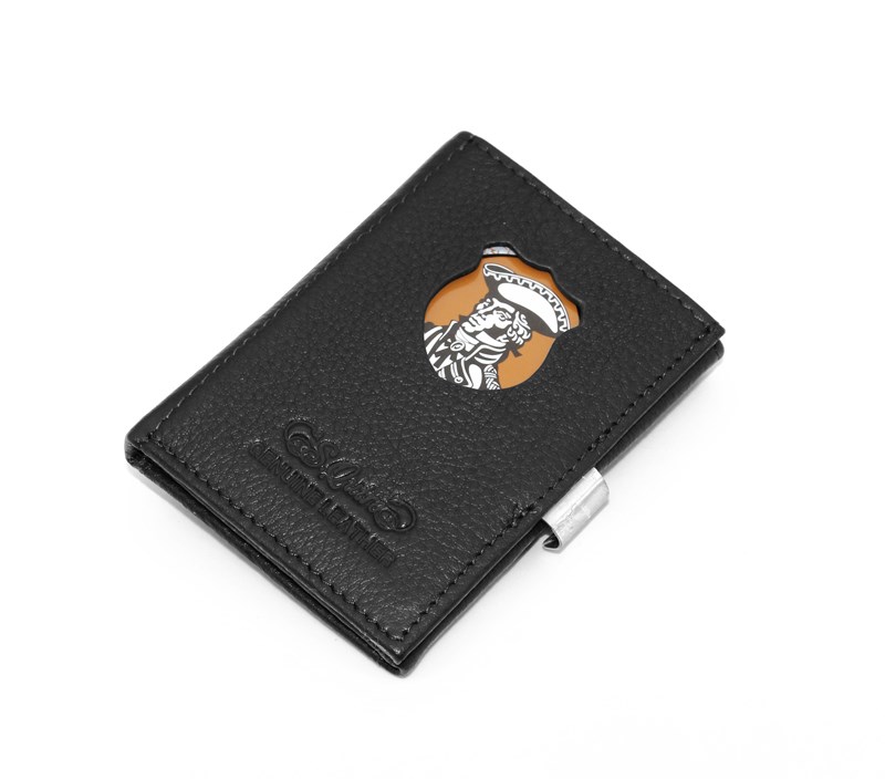 Кошелек S.Quire, натуральная кожа черная тисненая матовая 70*93*12 мм