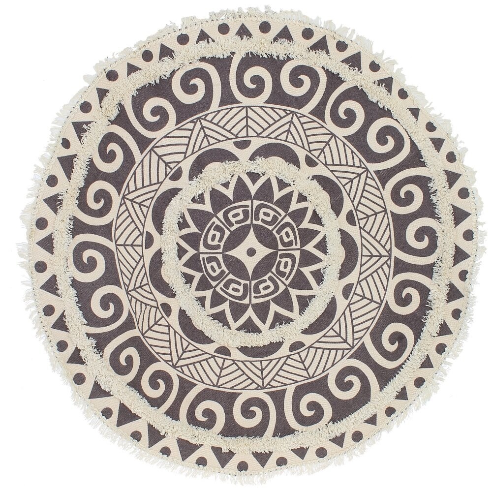 Круглый коврик в серо-бежевых тонах создаст уютную атмосферу и сделает ваш дом теплее и комфортнее. Можно использовать как накидку на мебель.