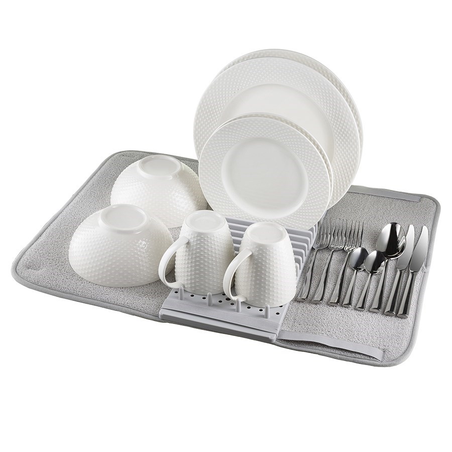 Коврик для сушки посуды Bris в лаконичном дизайне – функциональный и практичный аксессуар для любой современной кухни. Универсальная модель включает коврик из микрофибры и специальную подставку с нескользкой поверхностью, обеспечивающую надежную фиксацию. Изделие позволяет одновременно сушить посуду и на подставке, и на коврике. Высококачественный и износостойкий материал обеспечивает практичность в использовании, исключая негативное воздействие влаги и механические повреждения поверхности.