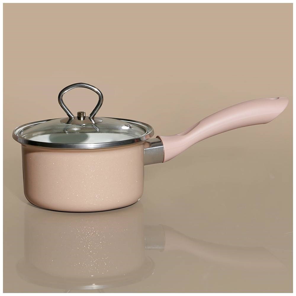 Ковш эмалир.со стеклянной крышкой с эффектом металлик серия "Deluxe" цвет: розовый 1,1 л. 14х8,5 см