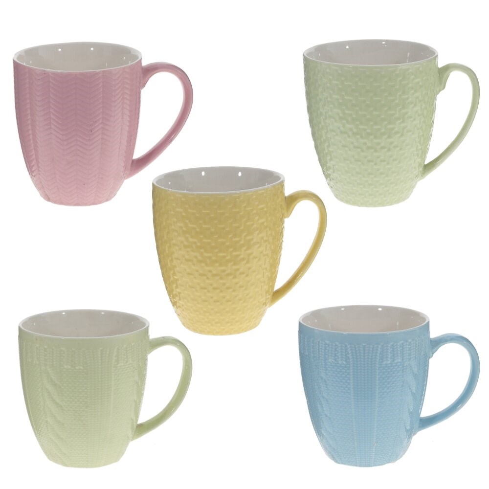 Фарфоровая кружка с удобной ручкой и рельефным дизайном, объемом 500 мл, прекрасно подойдет для повседневного домашнего использования. Представлена в 5 вариантах.