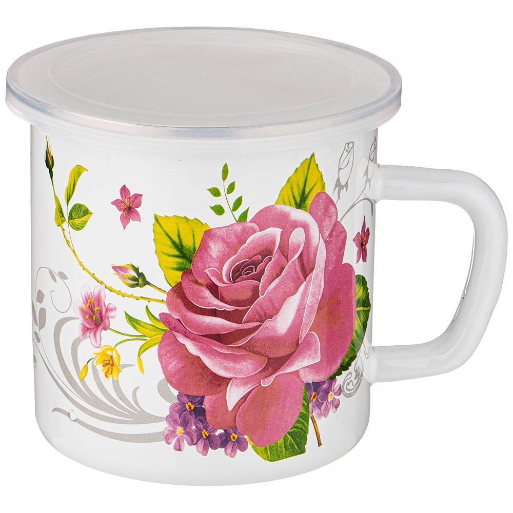 Кружка эмалированная с пластик.крышкой серия "Пленительная роза"1250 мл , 12*12 см