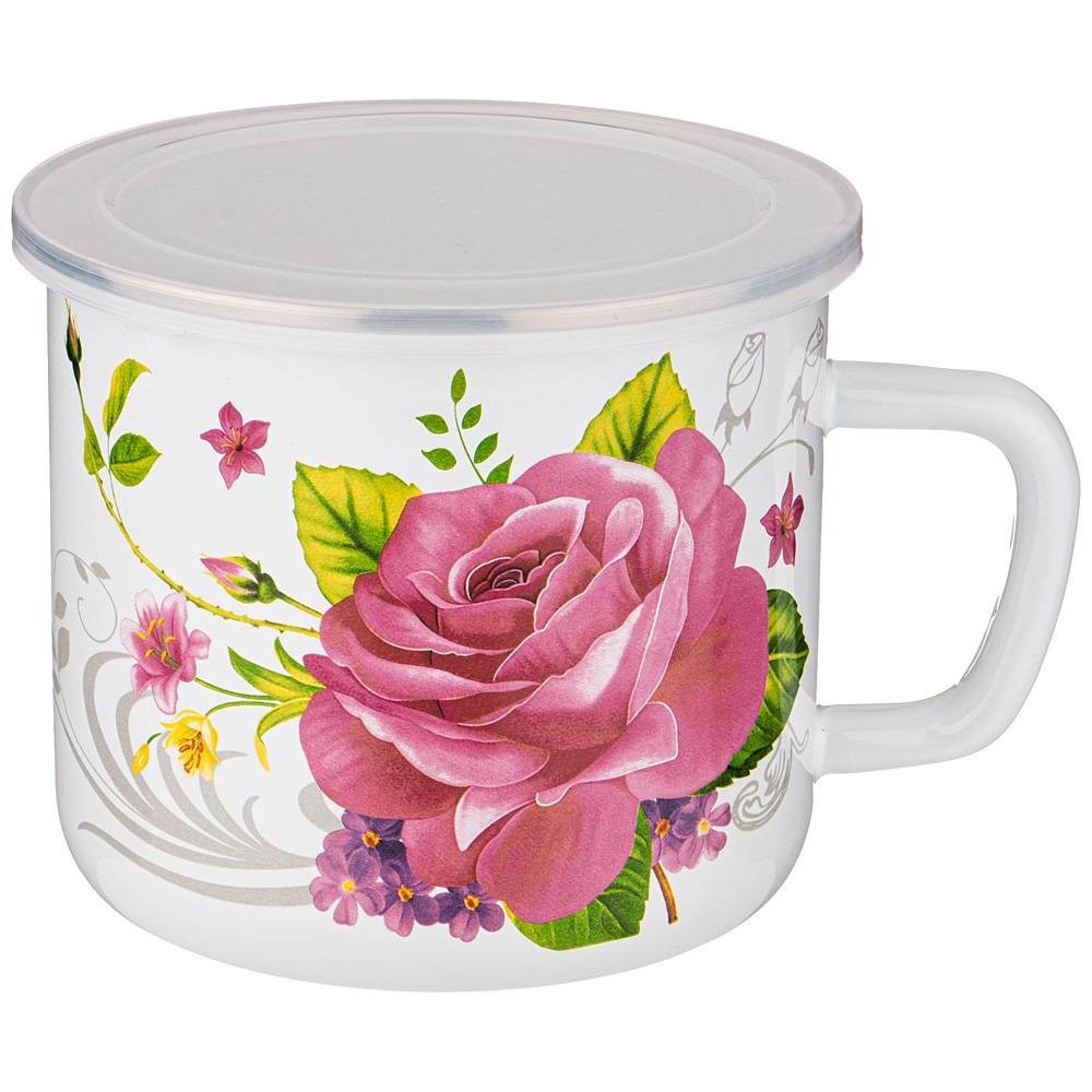 Кружка эмалированная с пластик.крышкой серия "Пленительная роза" 1500 мл , 14*12 см