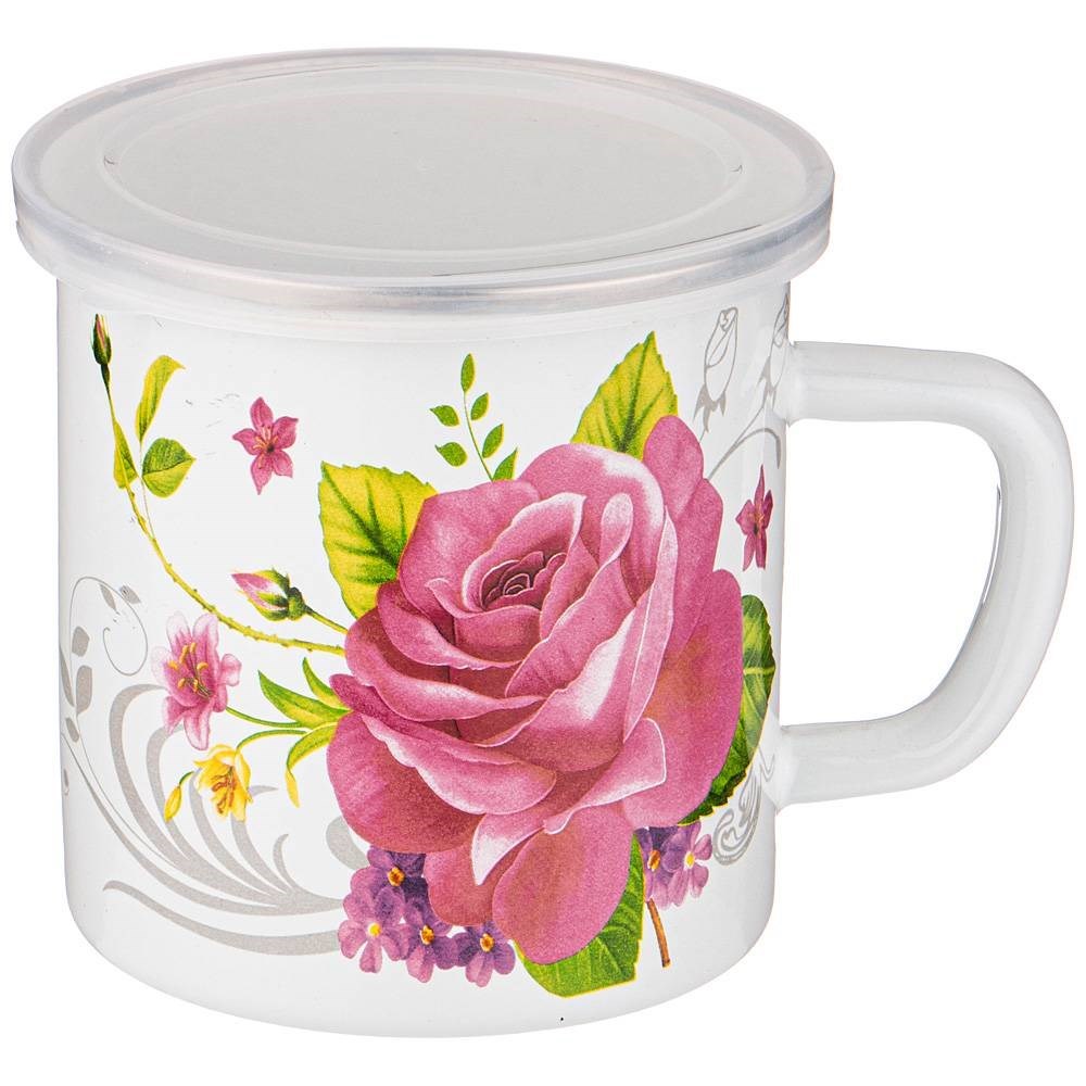 Кружка эмалированная с пластик.крышкой серия "Пленительная роза" 650 мл , 10*10 см