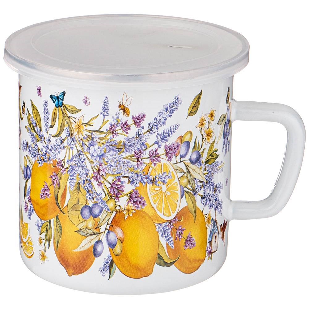 Кружка эмалированная с пластик.крышкой серия "Прованс лимоны" 1250 мл , 12*12 см