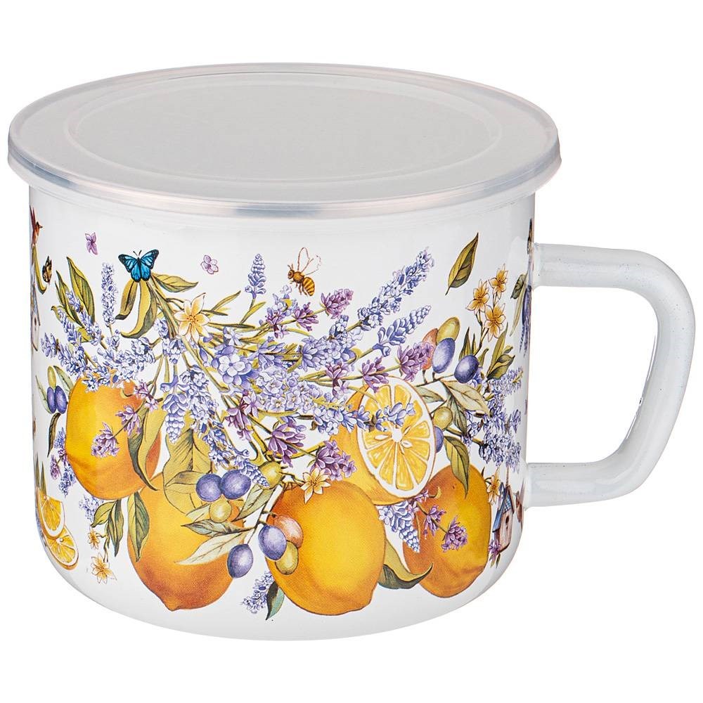 Кружка эмалированная с пластик.крышкой серия "Прованс лимоны" 1500 мл , 14*12 см