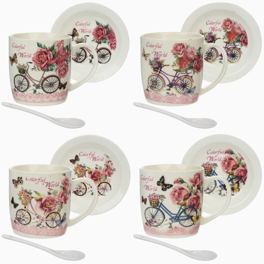 Кружка с блюдцем и ложкой, 400 мл, L12,5 W8,5 H9 см, 4в.