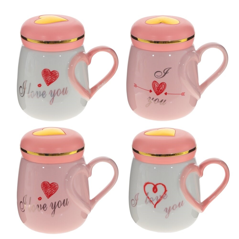 Кружка с крышкой, 500 мл, L13 W9,5 H12 см, 4в.