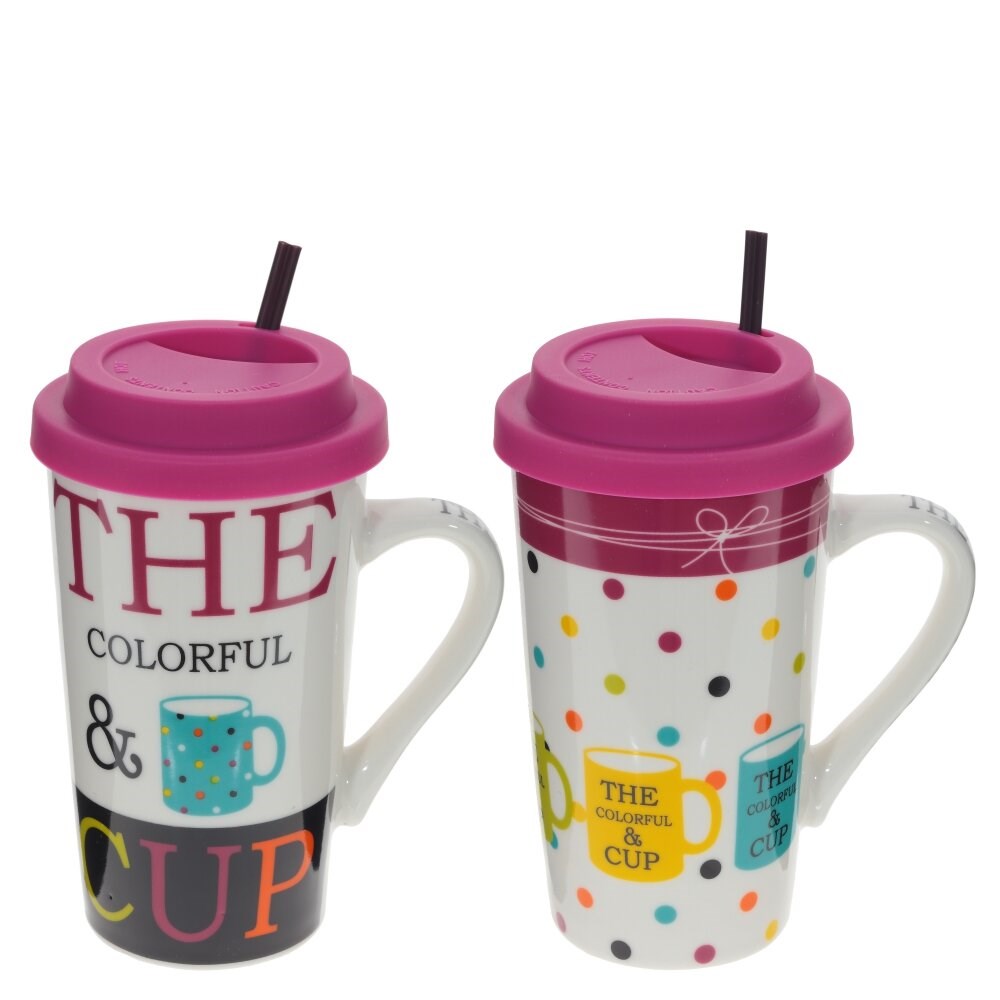 Кружка с крышкой, 550 мл, L13 W10 H16 см, 2в.