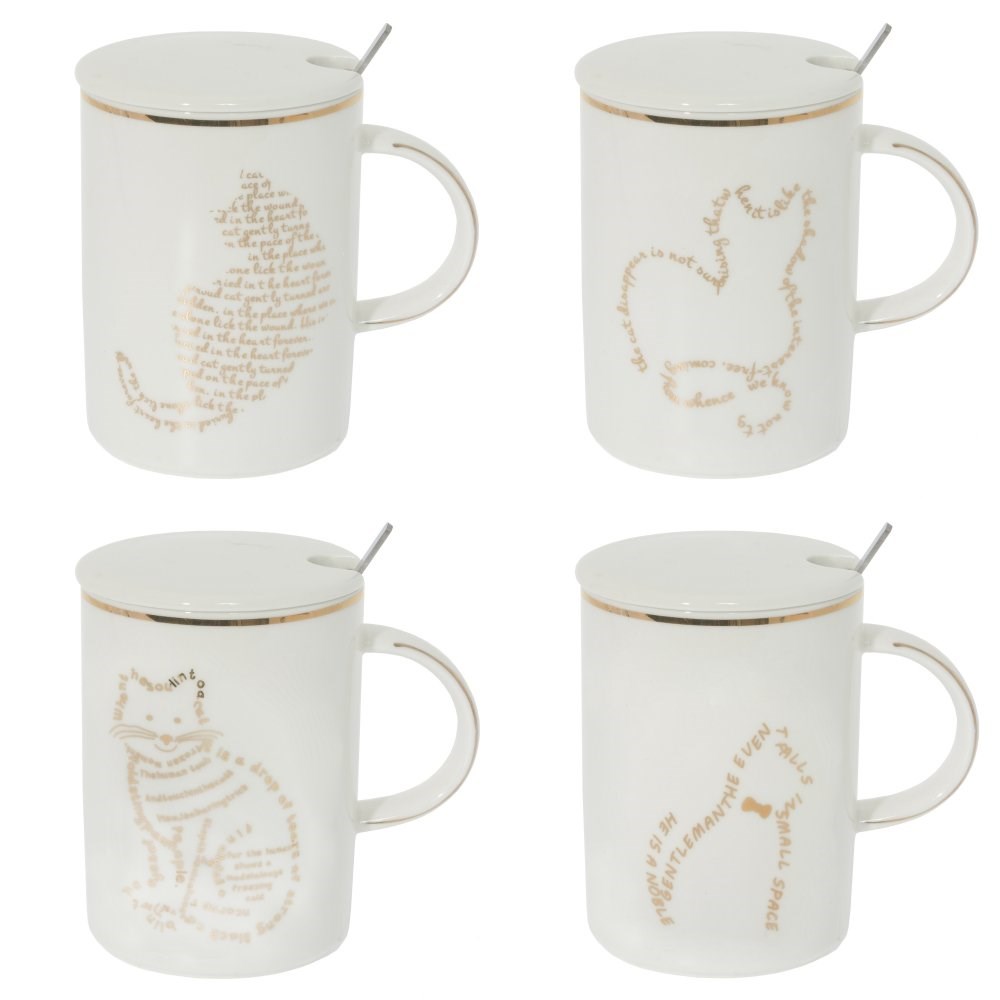 Кружка с крышкой и ложкой, изготовлена из фарфора, металла. Объем: 400 мл, размер: L11,5 W8 H11 см. Представлено в четырех вариантах. Упаковка-подарочная коробка.