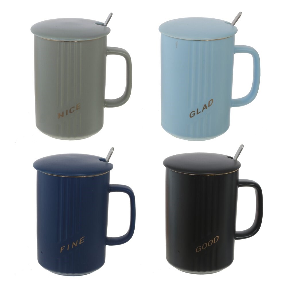 Кружка с крышкой и ложкой, 400 мл, L11 W8 H13 см, 4в.