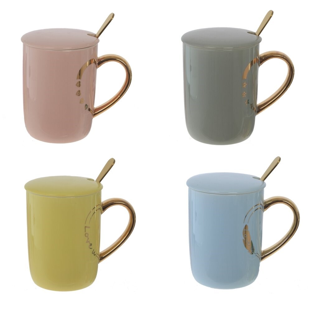 Кружка с крышкой и ложкой, 400 мл, L12 W9 H14 см, 4в.
