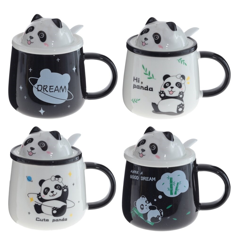 Ваш утренний кофе или чай станут вдвое вкуснее из этой фарфоровой кружки. Декор - милое изображение панды. Кружка снабжена фарфоровой крышкой и ложечкой. Дизайн вызовет улыбку у вас и ваших гостей. Объем: 400 мл. Представлена в 4 вариантах.