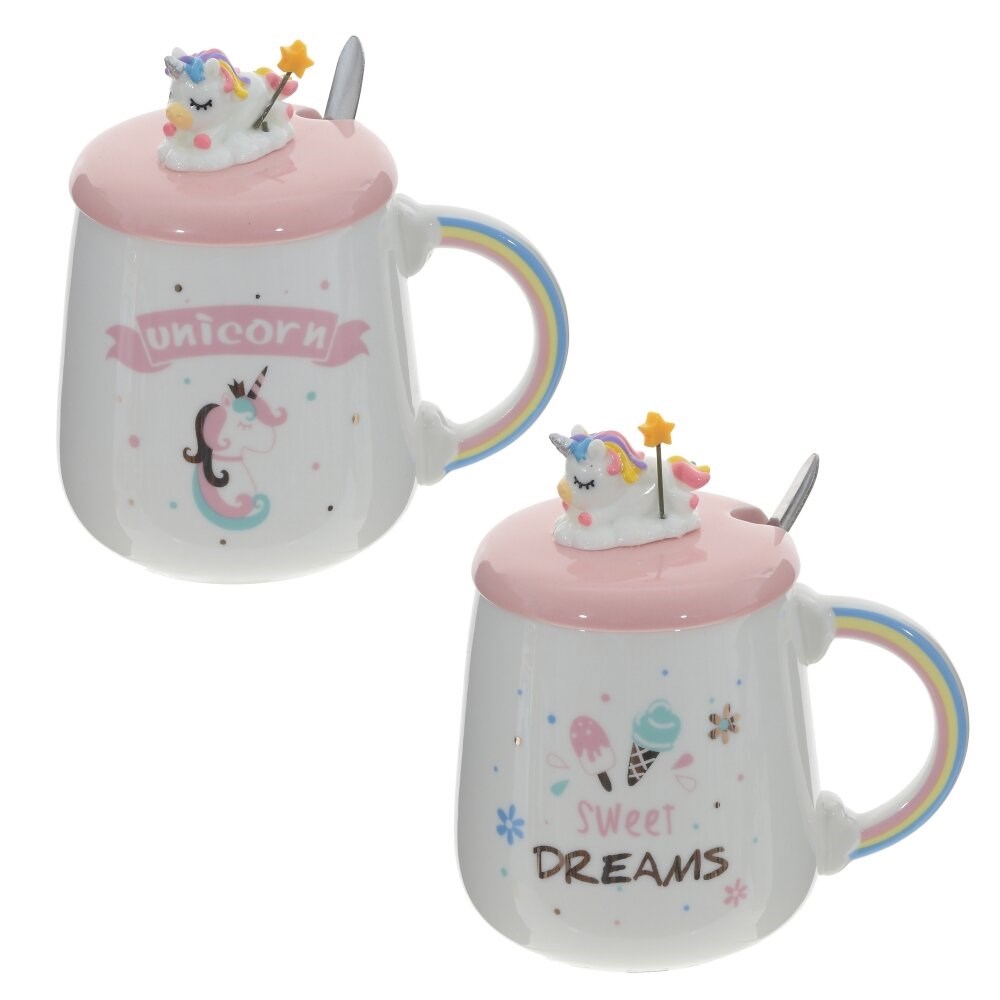 Кружка с крышкой и ложкой, 450 мл, L13 W9 H14 см, 2в.