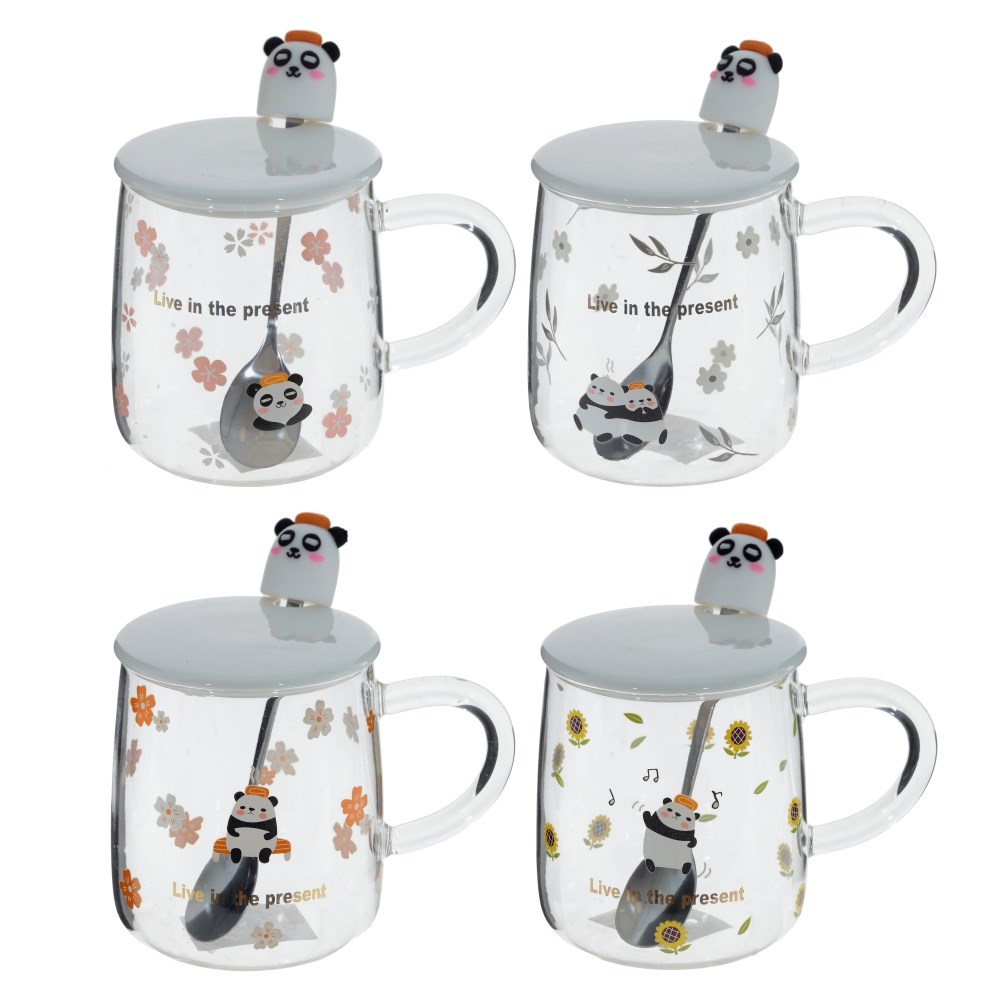 Кружка из стекла с удобной ручкой украшена милым изображением панды. В комплект также входит фарфоровая крышка с фигуркой и металлическая ложка. Эта кружка будет вашей любимицей, а каждое чаепитие с ней запоминающимся. Объем: 500 мл. Представлена в четырех вариантах.