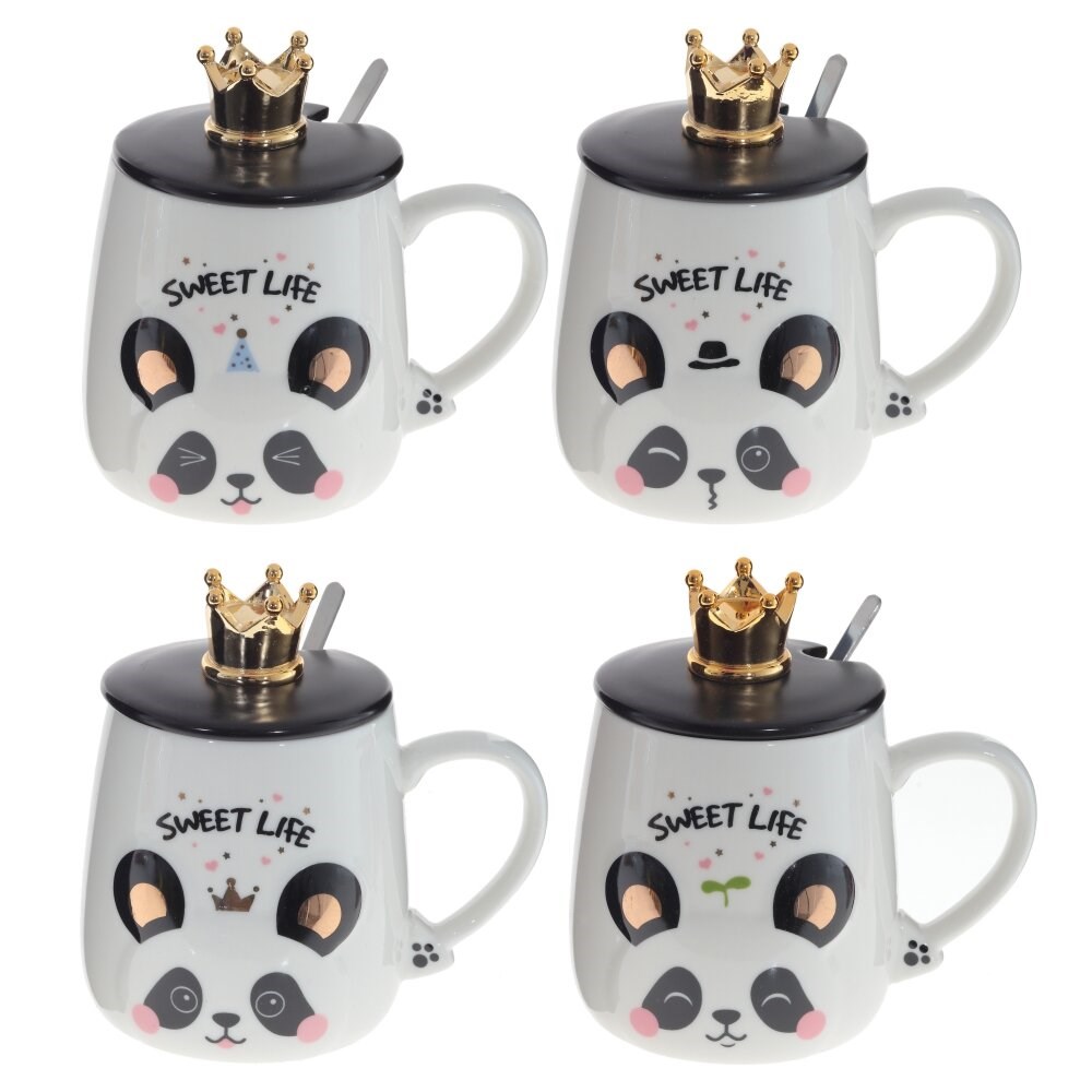 Ваш утренний кофе или чай станут вдвое вкуснее из этой фарфоровой кружки. Декор - милое изображение панды. Кружка снабжена фарфоровой крышкой, украшенной фигуркой короны, и металлической ложечкой, украшенной фигуркой панды. Дизайн вызовет улыбку у вас и ваших гостей. Объем: 500 мл. Представлена в 4 вариантах.