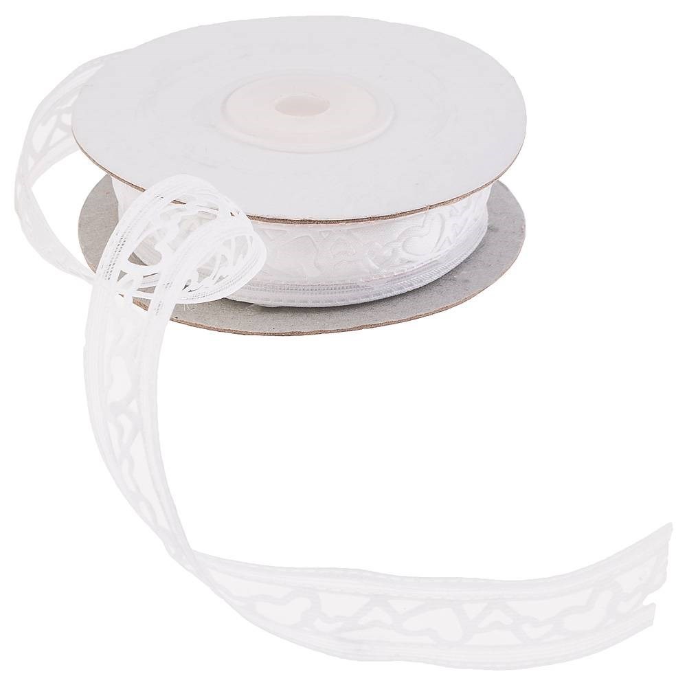 Лента атласная ажурная сердца , белая,шир 2 см , боб 10,4м