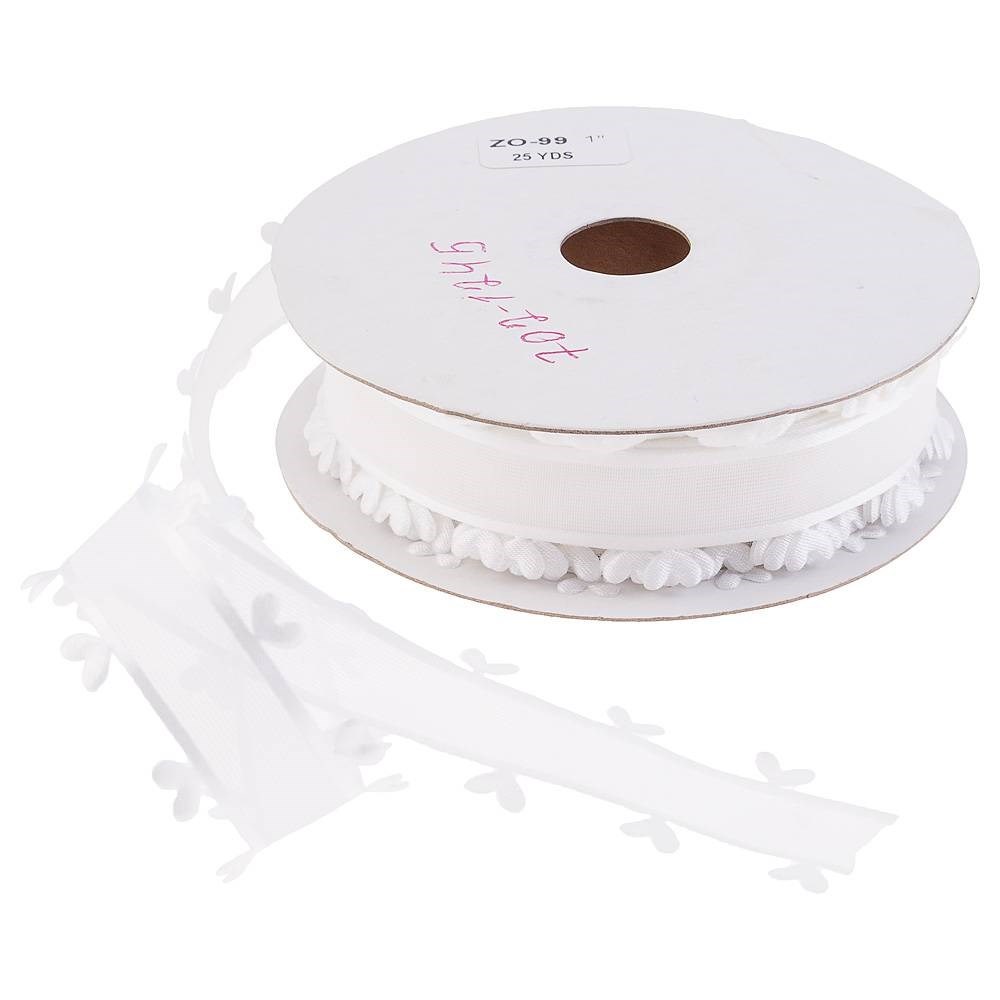 Лента капроновая с бордюром из сердечек, белая, шир 1,5 см боб 22,8 м