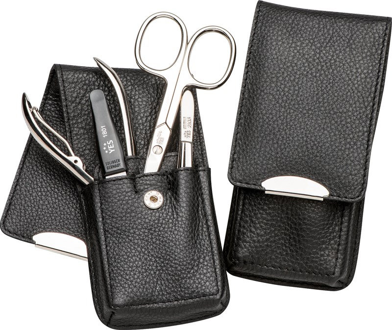 Маникюрный набор YES, 4 пр. Футляр: натуральная кожа, цвет черный
