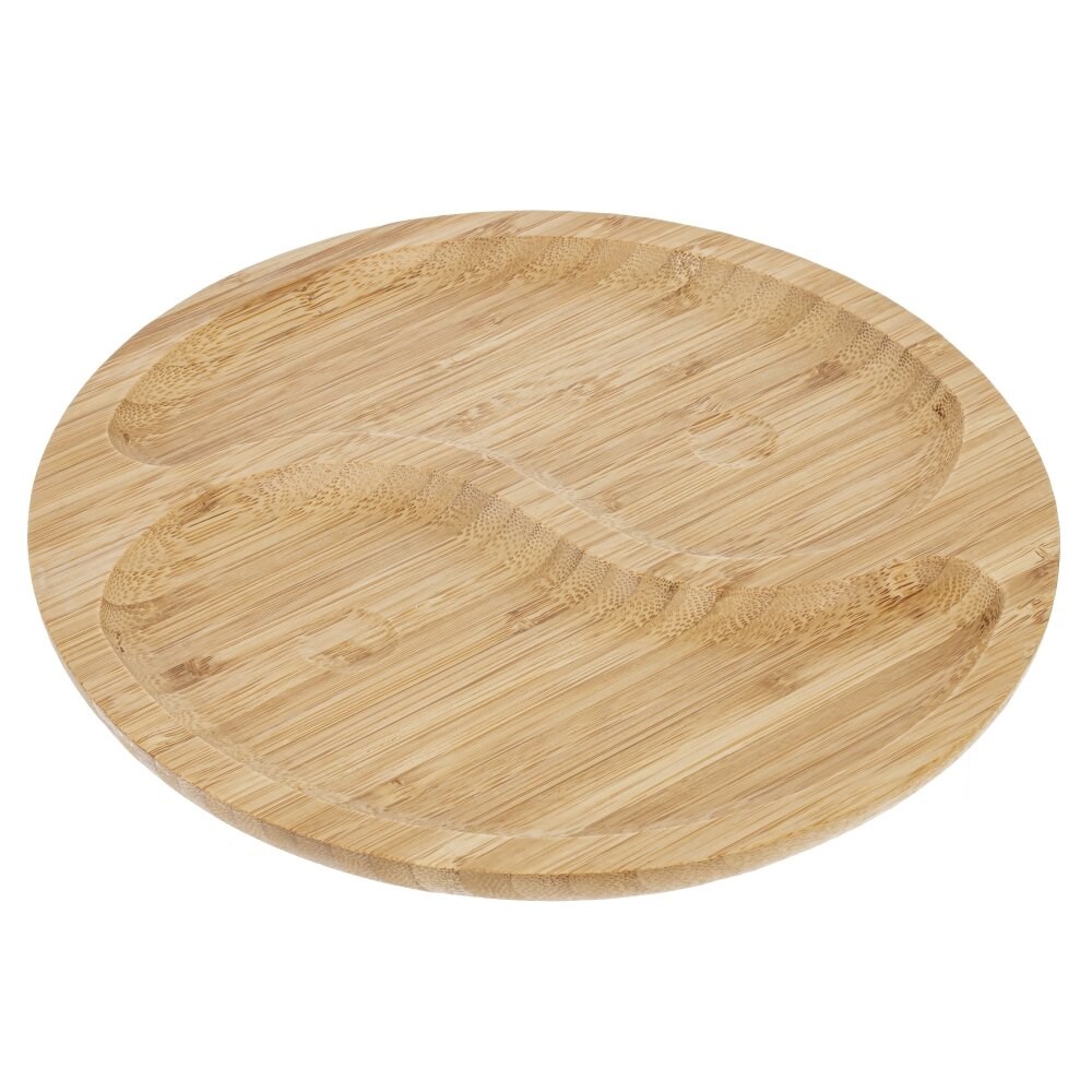Деревянная менажница состоит из двух секций, каждая из которых достаточно вместительна. Приподнесите для своих гостей пирожные или фрукты на этой изящной и привлекательной менажнице. Такая менажница станет прекрасным дополнением к праздничному столу.