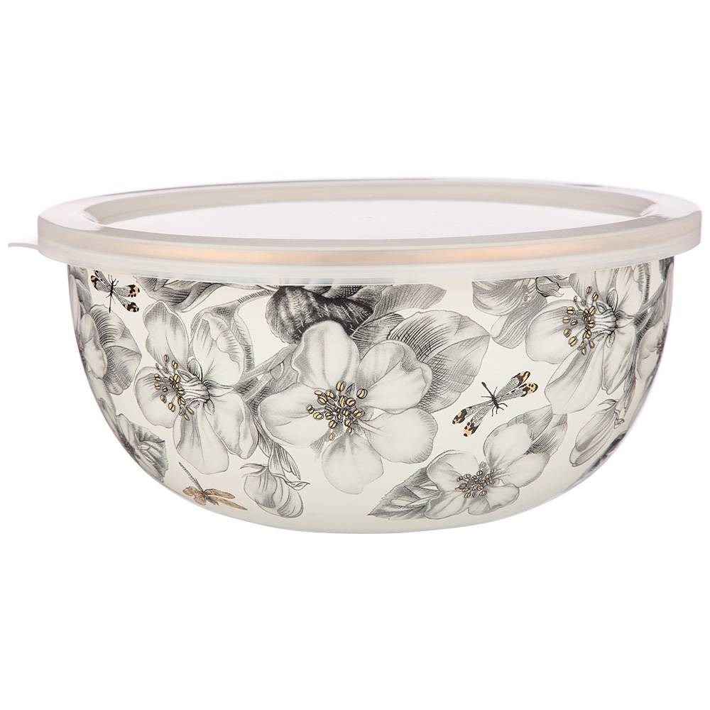 Миска agness эмалированная с пластиковой крышкой, серия яблоневый сад, 24 х 10,5 см / 2,8 л