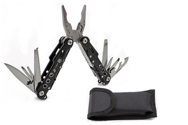 Мультитул Stinger, сталь/алюминий, (чёрный), 9 инструментов, нейлоновый чехол, короб.картон