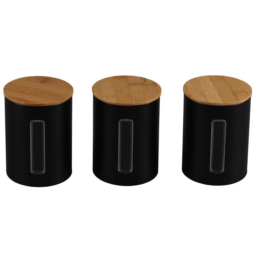 Набор банок для хранения Kaffi, 1 л, матовые черные, 3 шт.