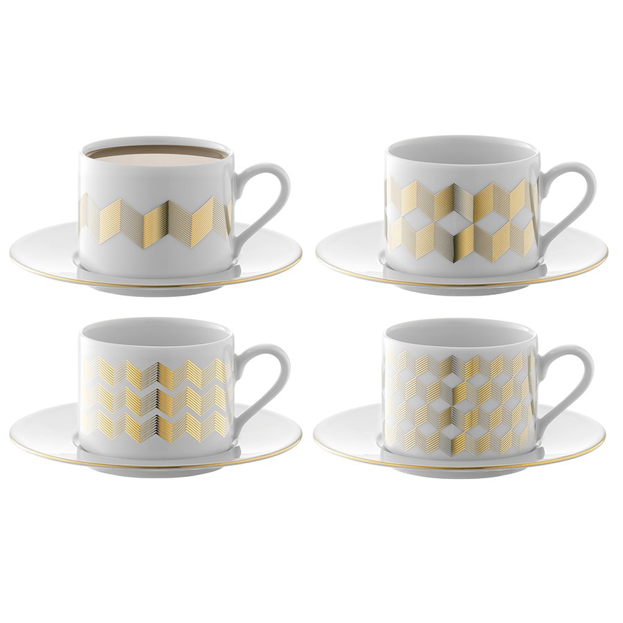 Набор чашек с блюдцами signature, chevron, 4 шт, 250 мл, золото