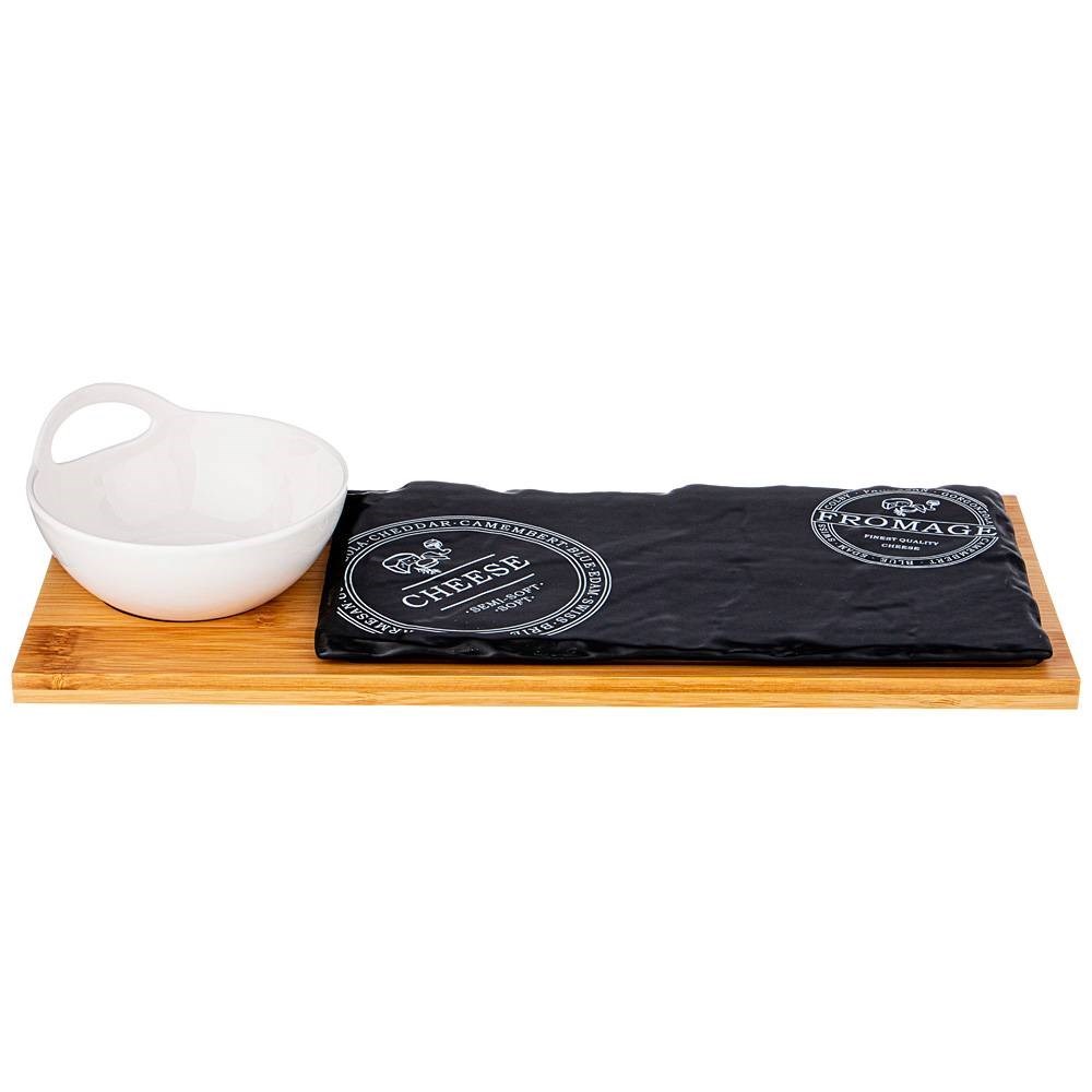 Комплектность: доска 24,5*13,2см, салатник 11,5*11,2см, подставка 35,8*14,5см.