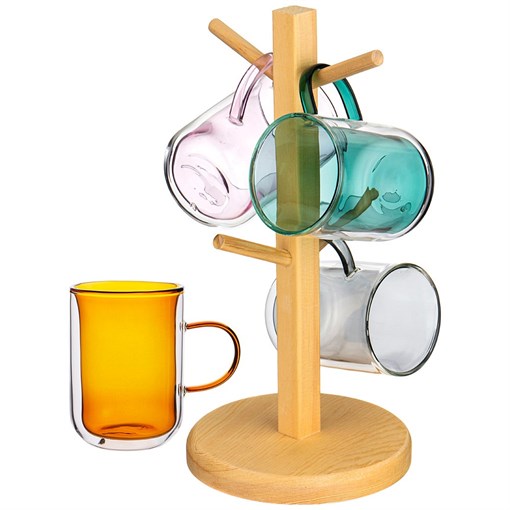 Набор из 4-х кружек "Double-wall" 250 мл диа=7,5 см H=10,5 см на подставке