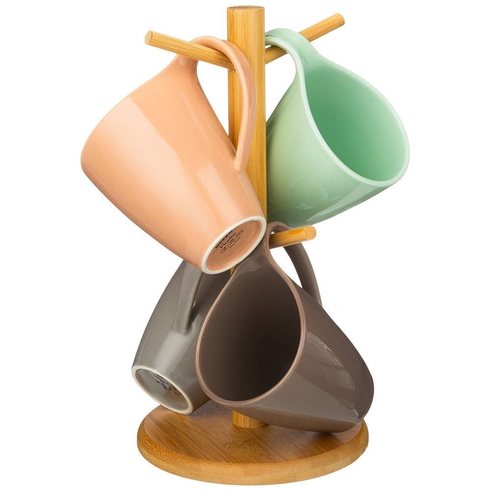 Набор из 4 кружек bronco "Meadow" на дерев. подставке 380 мл