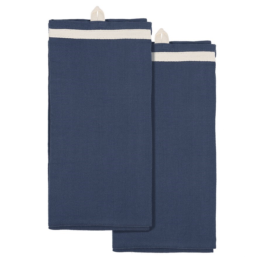 Набор из двух кухонных полотенец саржевого плетения темно-синего цвета из коллекции Essential, 50х70 см