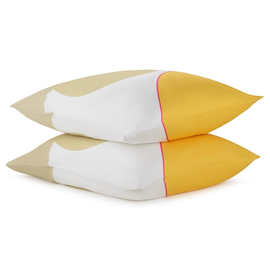 Набор из двух наволочек из сатина горчичного цвета с авторским принтом из коллекции freak fruit, 70