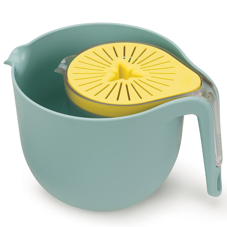 Этот полезный набор включает в себя емкость для смешивания, мерную чашу и соковыжималку для цитрусовых.