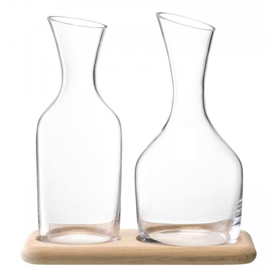 Коллекция Wine— воплощение элегантности, минимализма и изысканности. Набор из графинов для вина и воды на подставке из натурального дуба станет украшением стола. Безупречное качество стекла ручной работы от LSA International и утонченный дизайн делает этот сет прекрасным подарком на любой праздник.