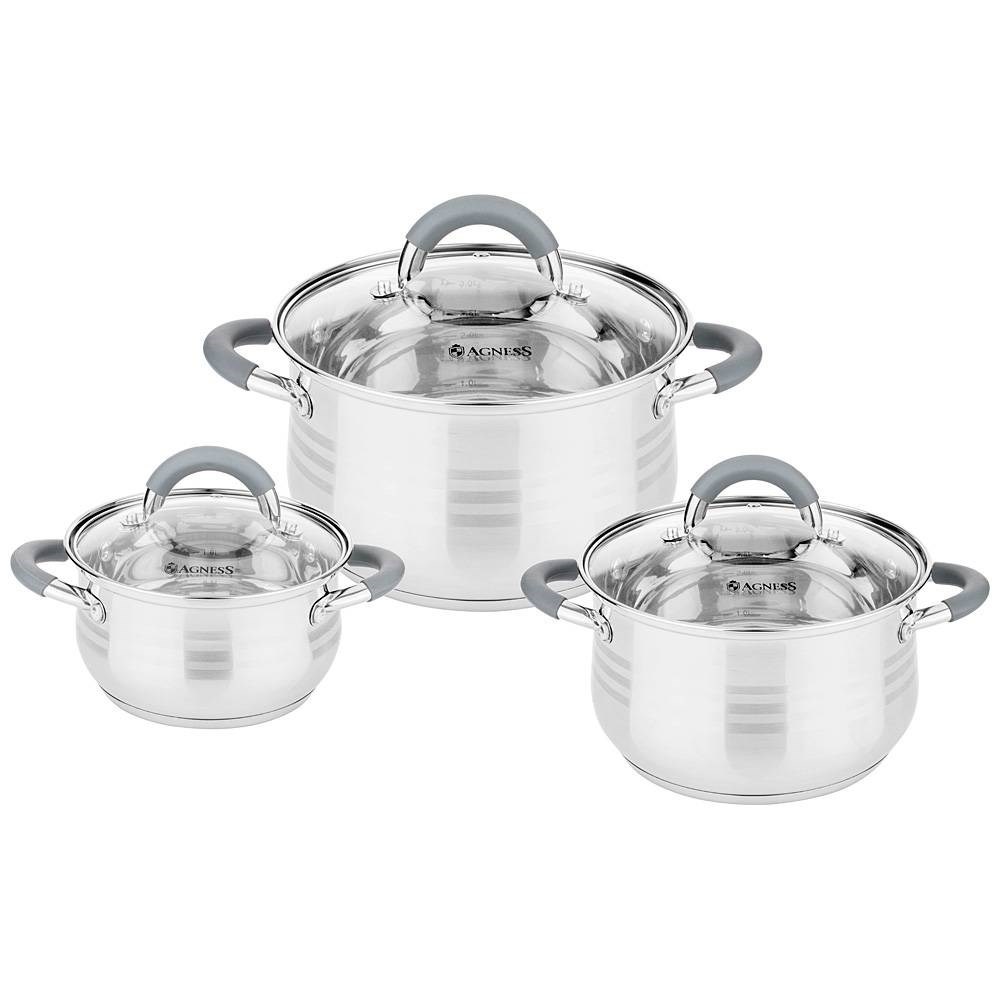 Набор кастрюль agness со стекл.крышками 6пр.1,7/2,6/3,5 л. размер 16x9,5/18x11,5/20x12.5 см
