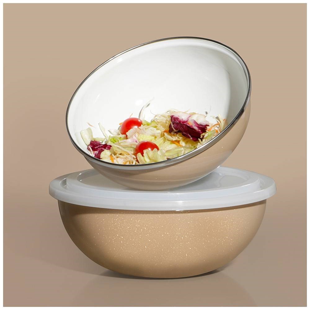 Набор мисок эмалир. с пласт. крышк,с эф-ом металлик серия "Deluxe"цв:кофейный 4пр. 1.7/3,0л. 20/24 с