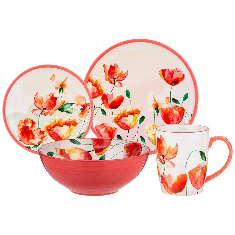 Комплектность: тарелка обеденная 25см - 4 шт., тарелка закусочная 20,5 - 4 шт, салатник 16см 600 мл - 4 шт., кружка 350 мл - 4 шт.