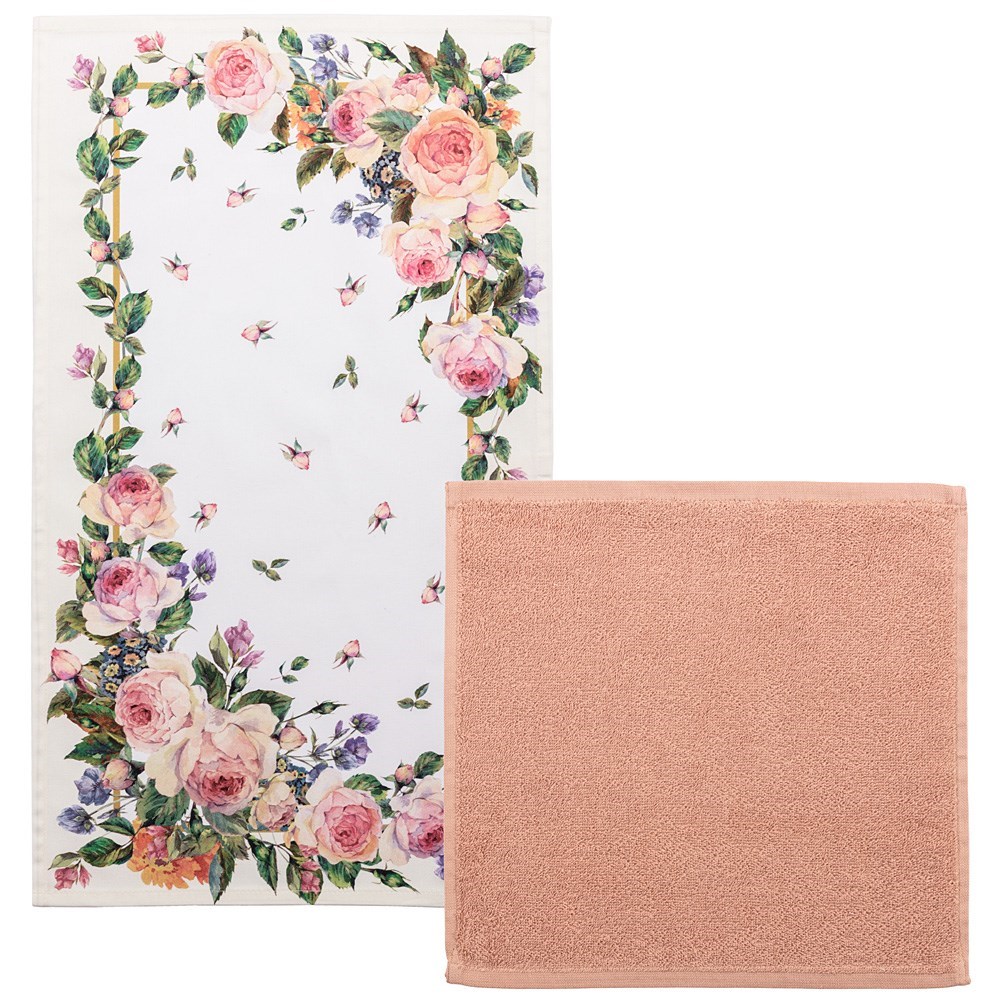 Набор полотенец из 2-шт "Винтаж" 40х70 см /35х35 см ,крем+бежевый, 100% хлопок,твил/махра