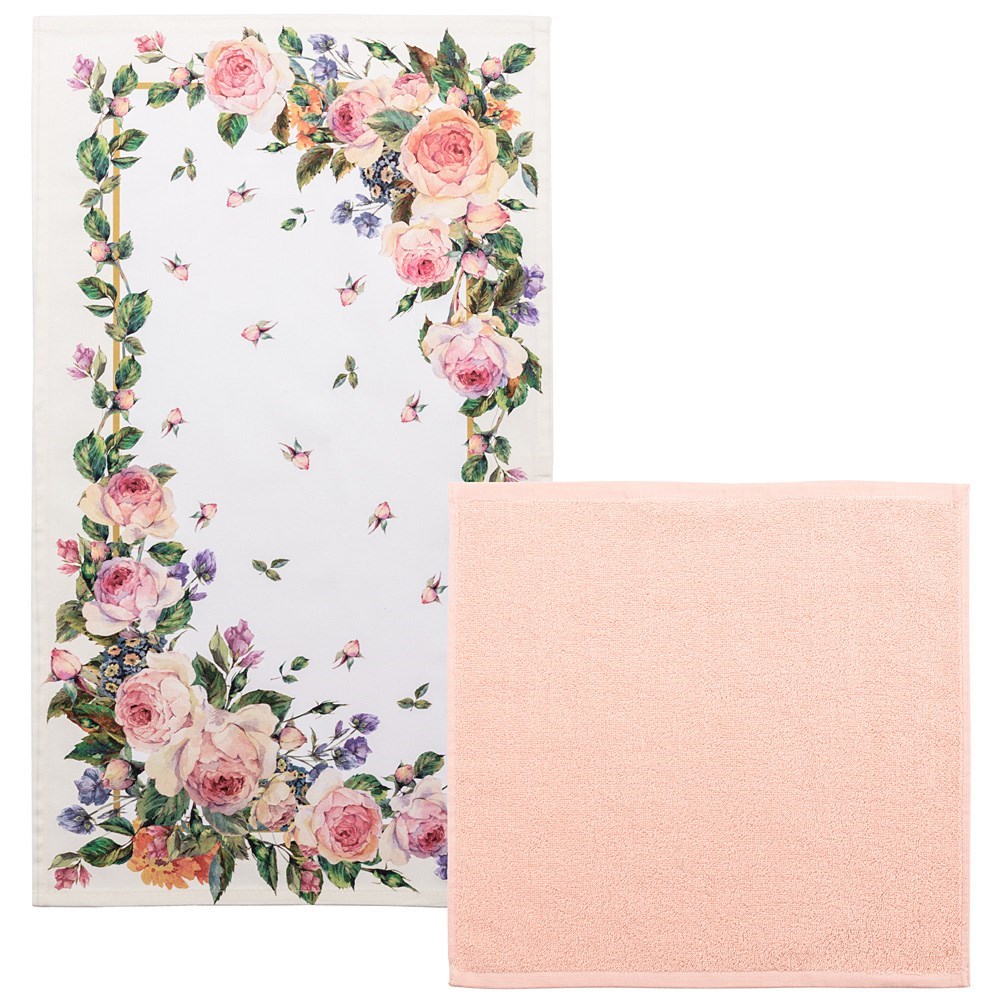 Набор полотенец из 2-шт "Винтаж" 40х70 см /40х40 см ,крем+розовый, 100% хлопок,твил/махра