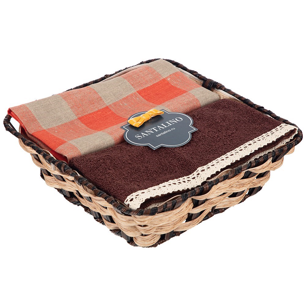 Набор полотенец кухонных из 2-х шт "Эко-стиль"50х30 см , коричневый+клетка ,х/б100%,лён100%