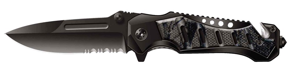 Нож складной Stinger, 90 мм - длина клинка, (черный), рукоять: сталь/алюминий (камуфляж+черный), коробка картон