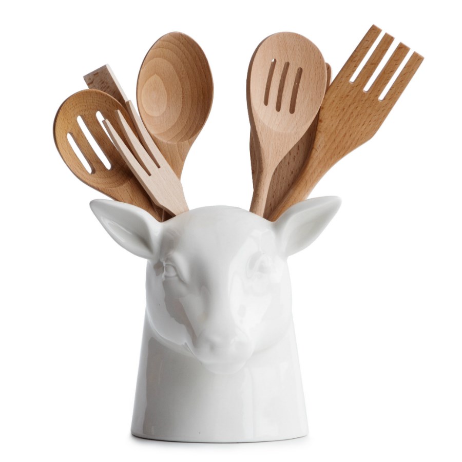 Керамический органайзер Stag позволит вам освободить ценное пространство на кухне и всегда держать под рукой столовые принадлежности (ложки, черпаки, лопатки и пр.). Изделие выполнено в виде головы оленя с двумя отсеками для хранения, поэтому чем больше предметов вы поставите, тем более красивыми и ветвистыми будут выглядеть его рога.