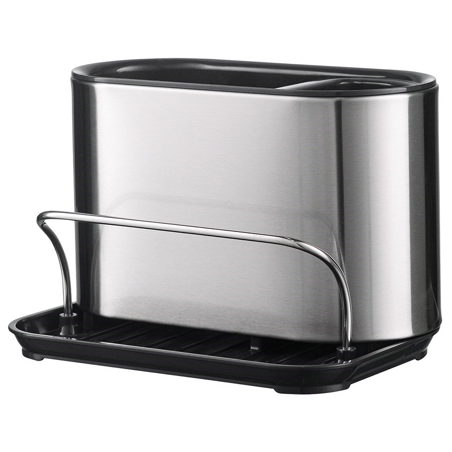Органайзер Atle позволяет компактно разместить средство для мытья посуды, губку, щетку и другие предметы для уборки кухни непосредственно на мойке или на столешнице. Изделие выполнено из прочного и устойчивого к износу АБС-пластика и нержавеющей стали. Стильный контейнер в универсальном цветовом решении органично вписывается в различные варианты оформления интерьера.