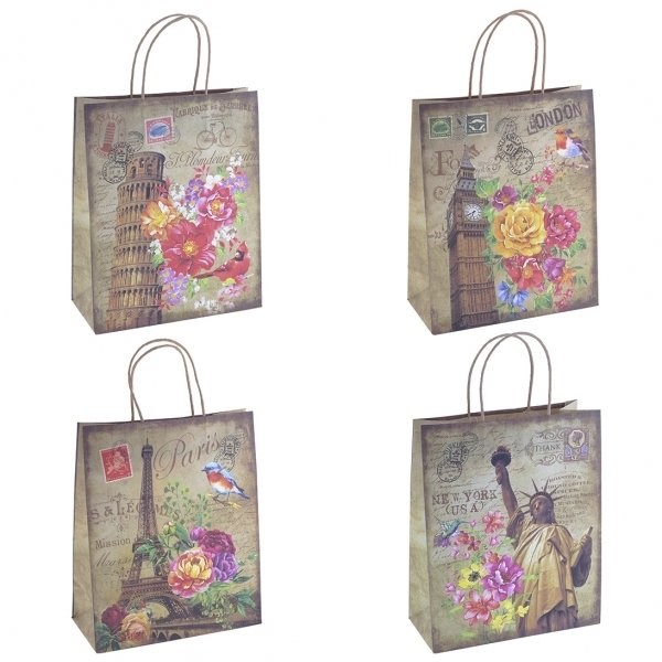 Пакет подарочный, (бумага, плотность 120г/м2, блок из 12-и шт.), L26 W12 H32 см. 4в